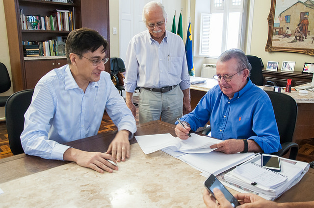 O reitor da Universidade Federal do Ceará, Prof. Henry de Holanda Campos, reuniu-se na tarde desta terça-feira (7), em seu gabinete, com o diretor-presidente da Companhia de Gás do Ceará (Cegás), Hugo Figueirêdo. O encontro marcou a assinatura de convênio para a realização de pesquisa de mercado que irá avaliar o potencial de expansão de fornecimento de gás natural no Estado.