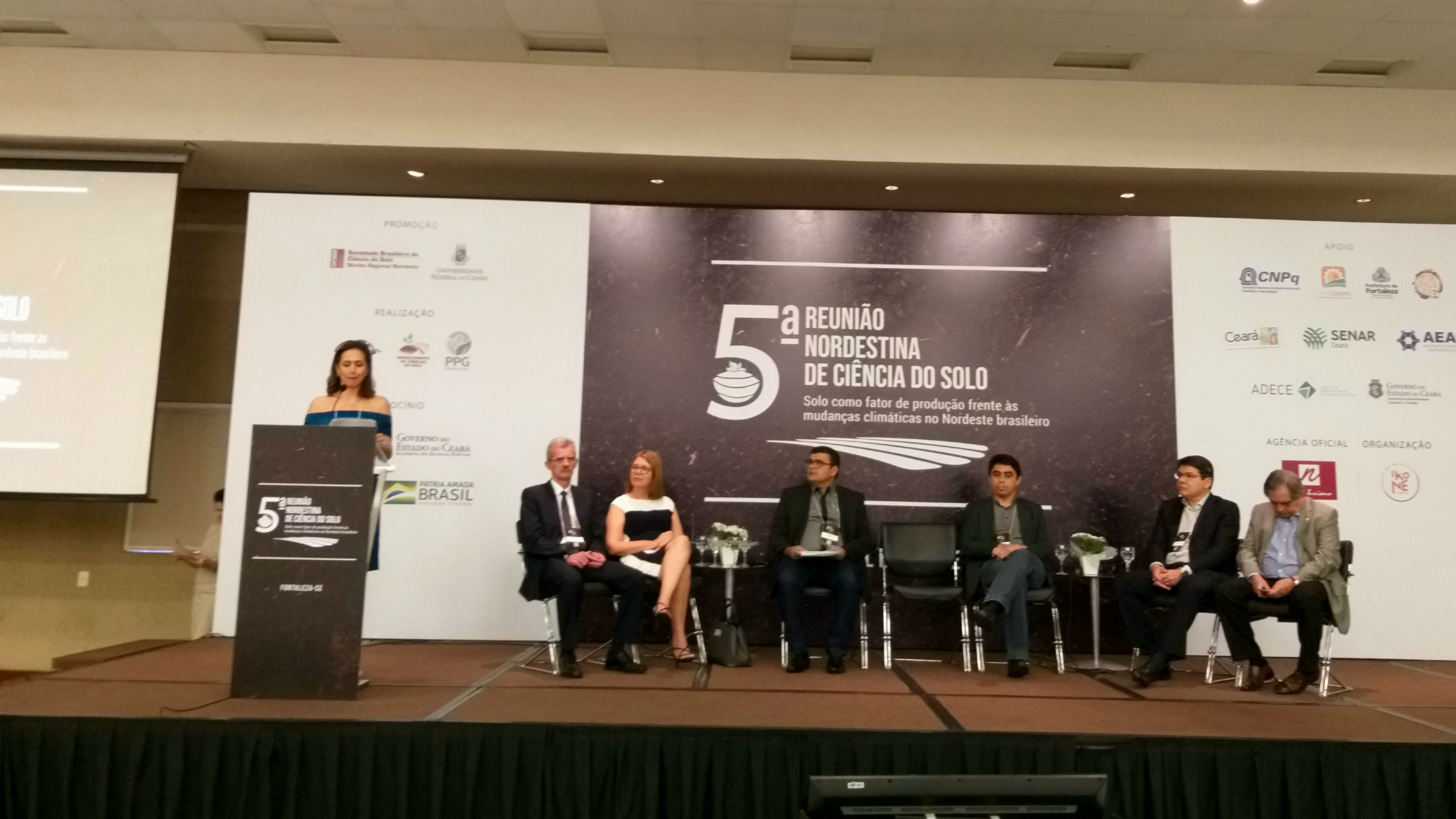A discussão sobre a desertificação do semiárido e o papel da Universidade em buscar soluções para mitigar os efeitos desse processo através de pesquisas de alto padrão deu o tom da abertura da 5ª Reunião Nordestina de Ciência do Solo (5ª RNCS), na manhã desta segunda-feira (27), em Fortaleza. O evento, que traz como tema "Solo como fator de produção frente às mudanças climáticas no Nordeste brasileiro", é promovido pelo núcleo regional da Sociedade Brasileira de Ciência do Solo e realizado pela Universidade Federal do Ceará. A programação segue até quinta-feira (30) no Hotel Praia Centro.